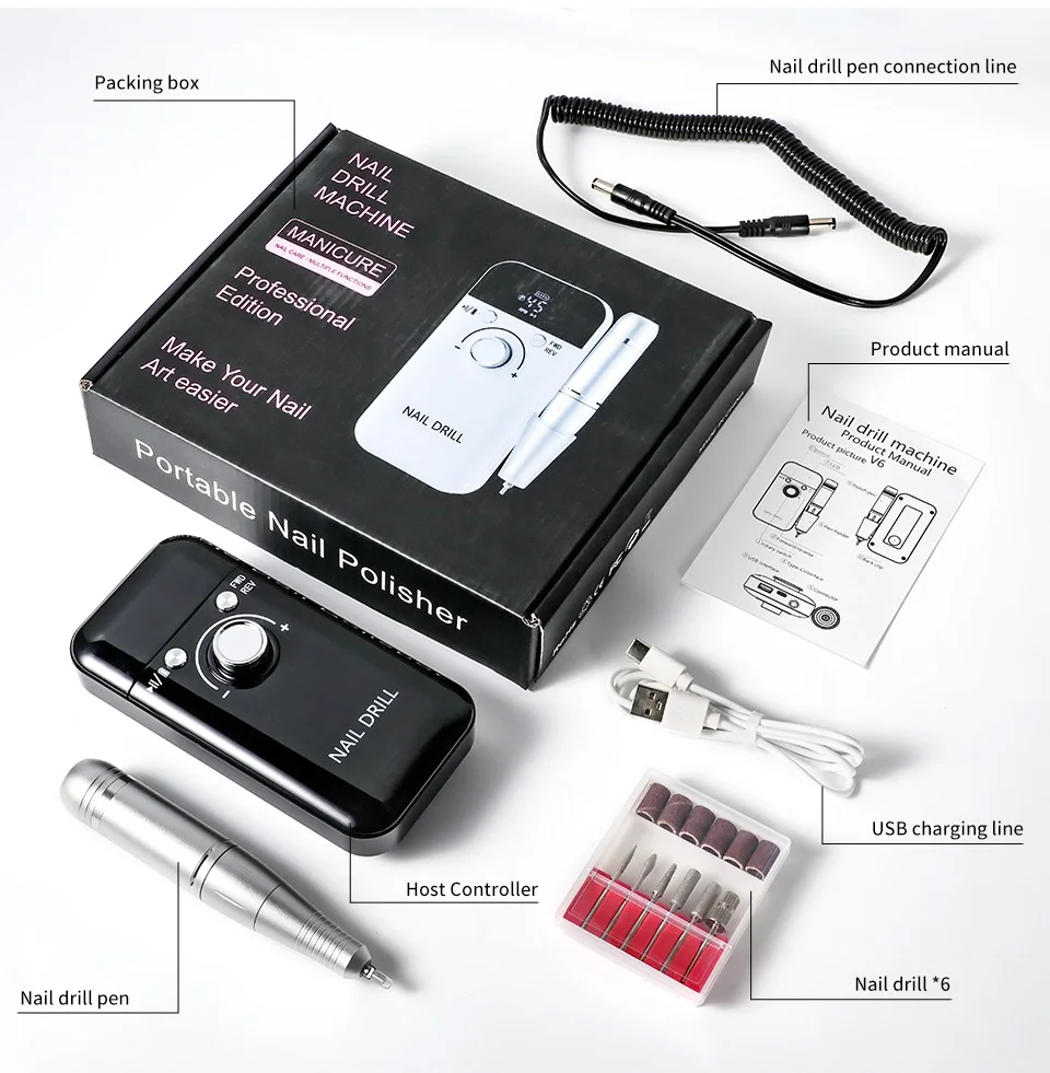 Taladro de uñas eléctrico profesional de 45000 RPM, pulidor recargable con pantalla LCD, adecuado para lima de uñas de gel, herramienta de manicura