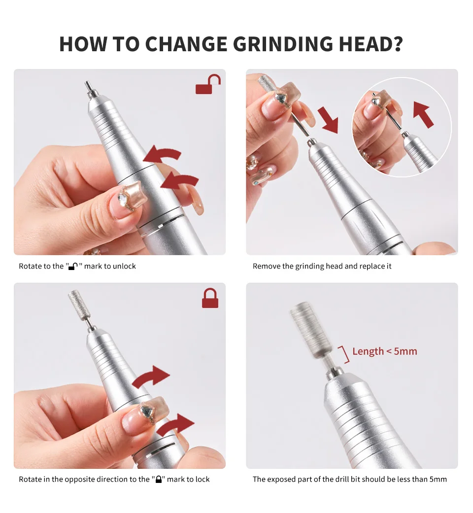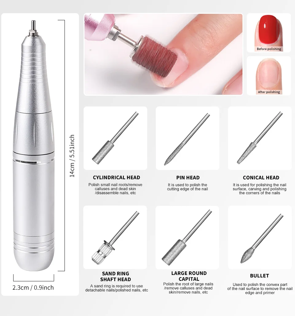 【 Multifunctional 】: The acrylic nail drill can be used for grinding, cutting, polishing, acrylic powder, carving and removing gel nails, cuticles and dead skin Does not hurt hands and nails.