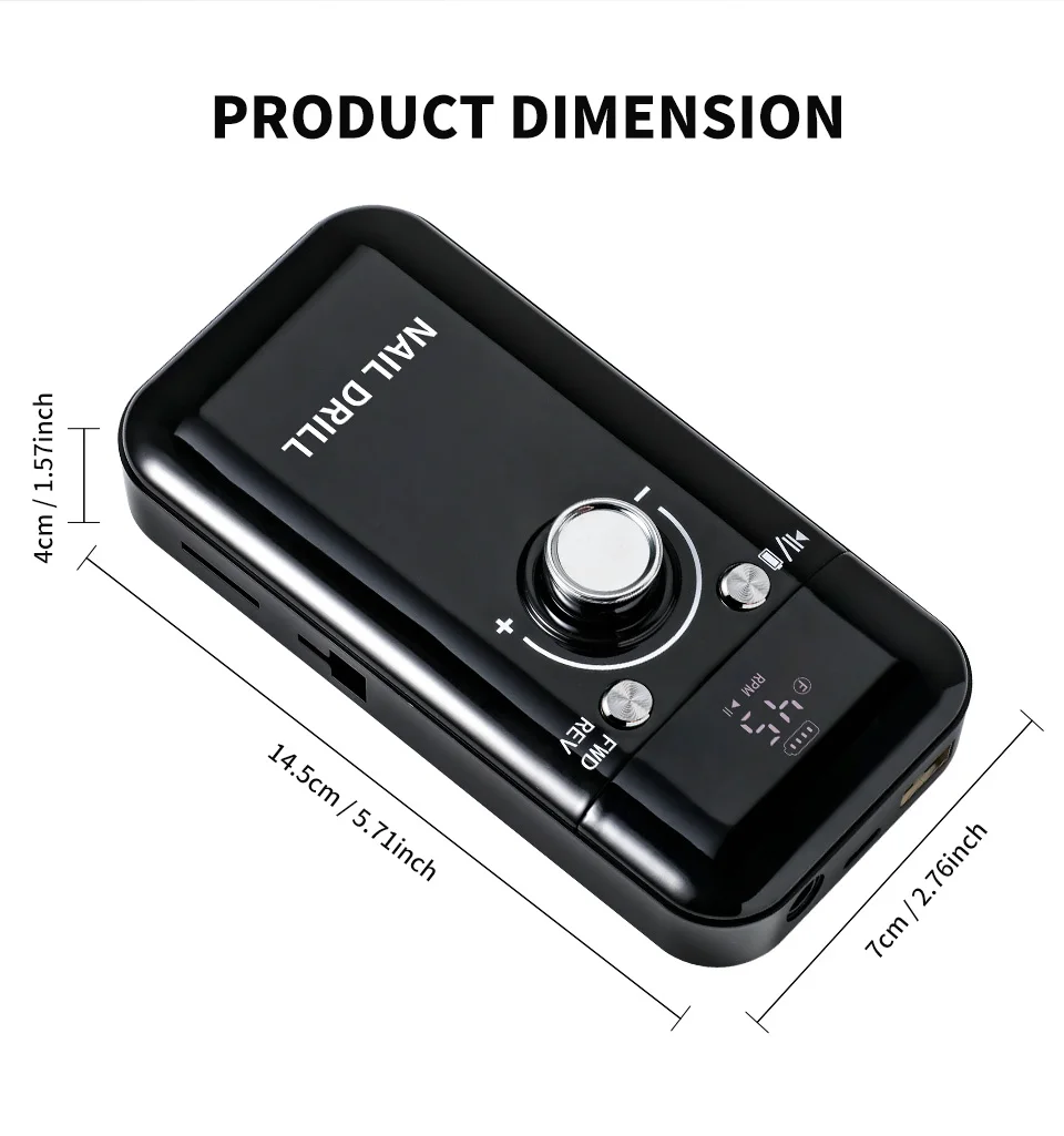 【 Maximum speed 45000RPM】: The rechargeable nail drill matched with a mobile power supply can work for up to 10-12 hours after being fully charged for 3.5 hours.